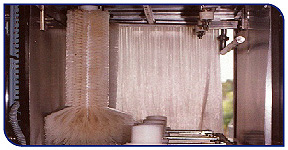 with angular sprays to wash the outer surface of the bottle. The scrubber